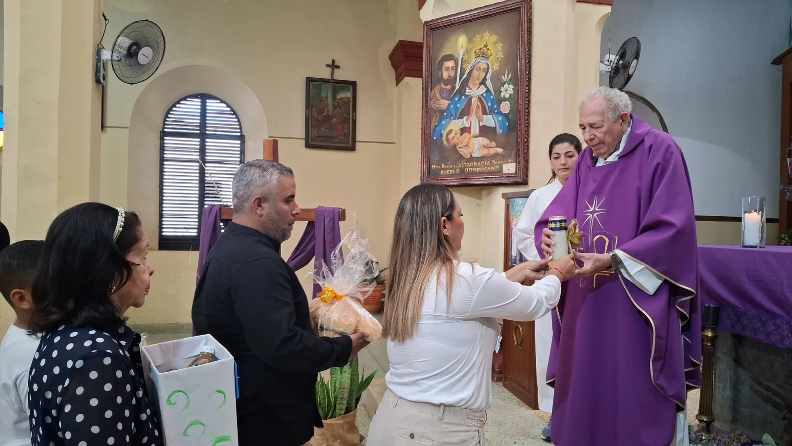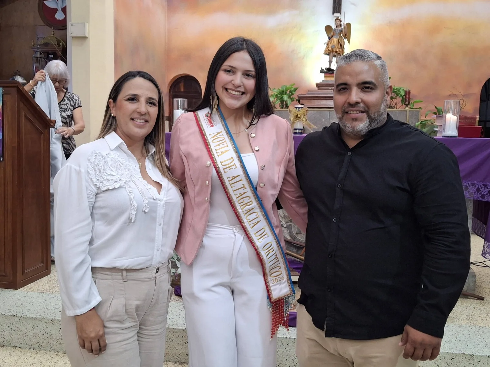 La belleza y la juventud de nuestro valle estuvieron representadas por Antonella Gómez, Novia de Altagracia 2026, quien participó activamente en las ofrendas junto a los diversos cuerpos de seguridad, encabezados por el Comandante Denis Durand, del Cuerpo de Bomberos "André Fourneau".