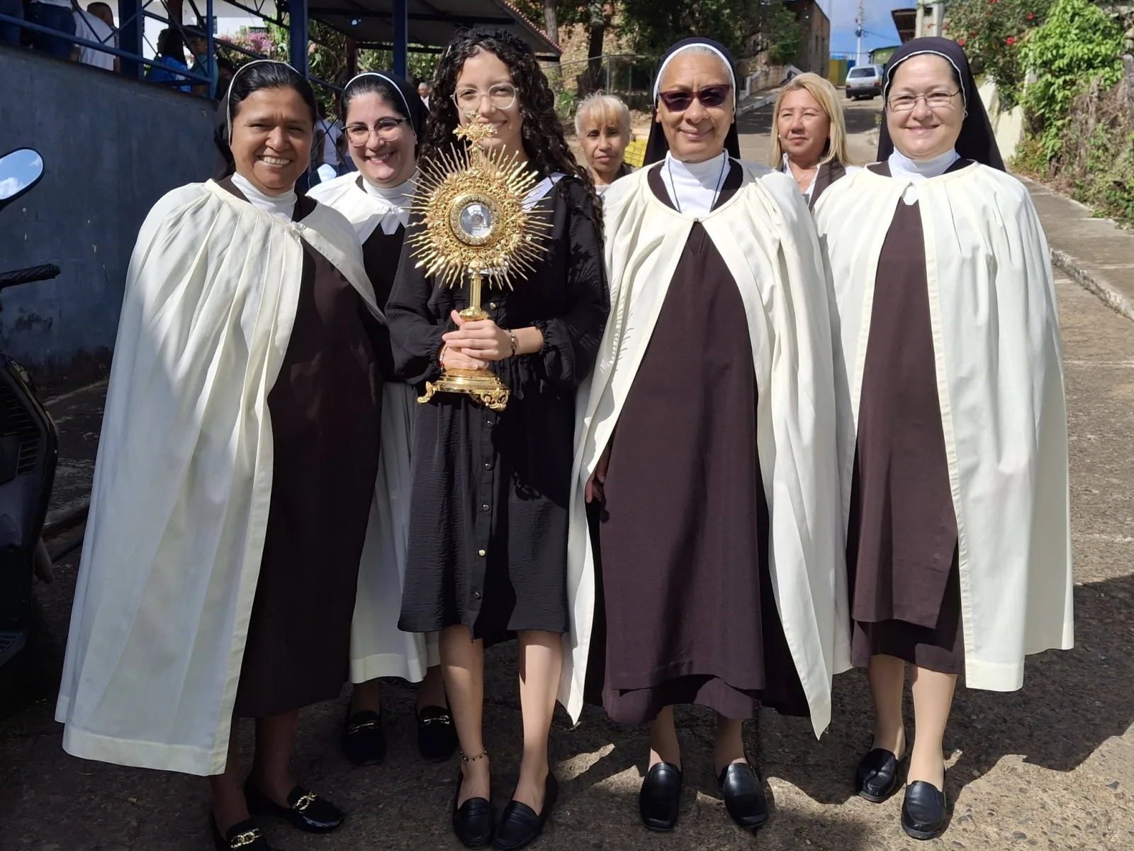 El homenaje contó con momentos de profunda emoción, especialmente con la presencia de las Hermanitas Carmelitas de nuestra casa hogar, quienes recibieron con alegría a una comisión especial llegada desde Caracas para esta fecha tan significativa.
