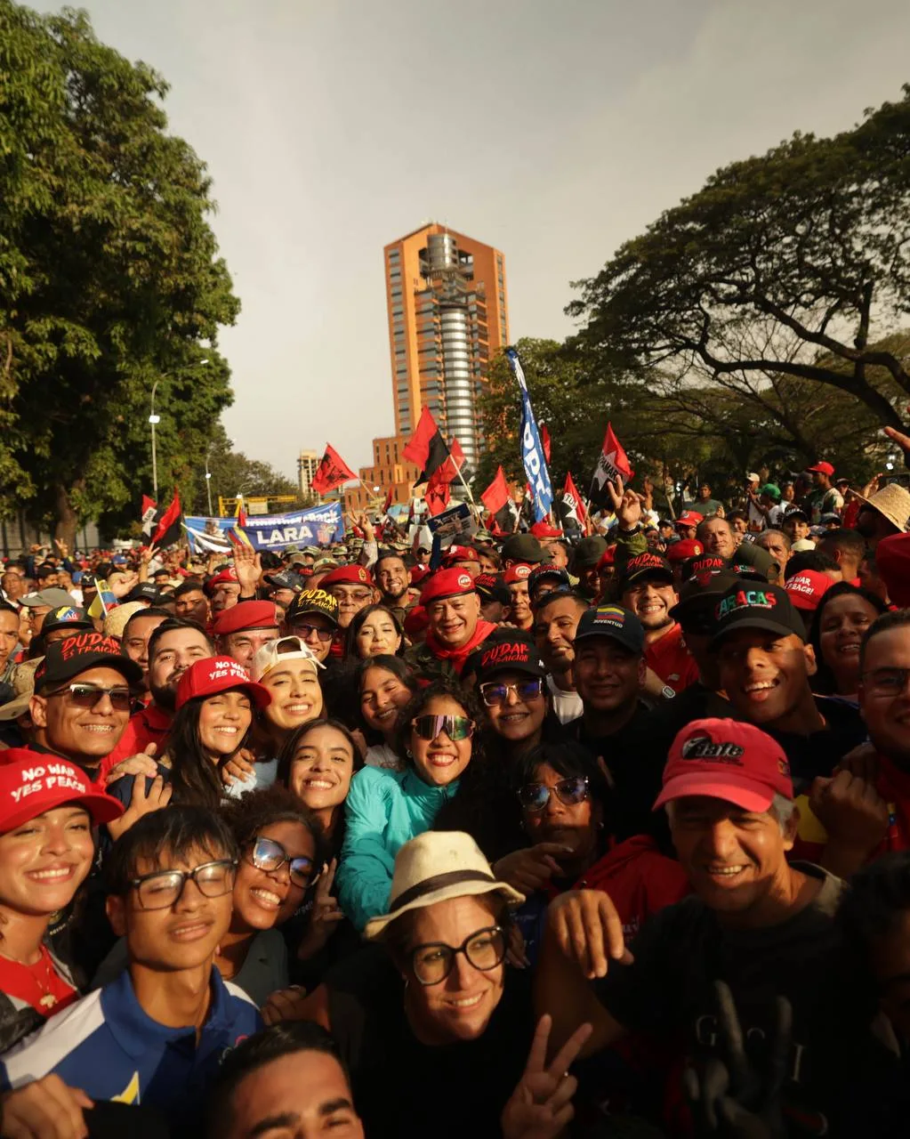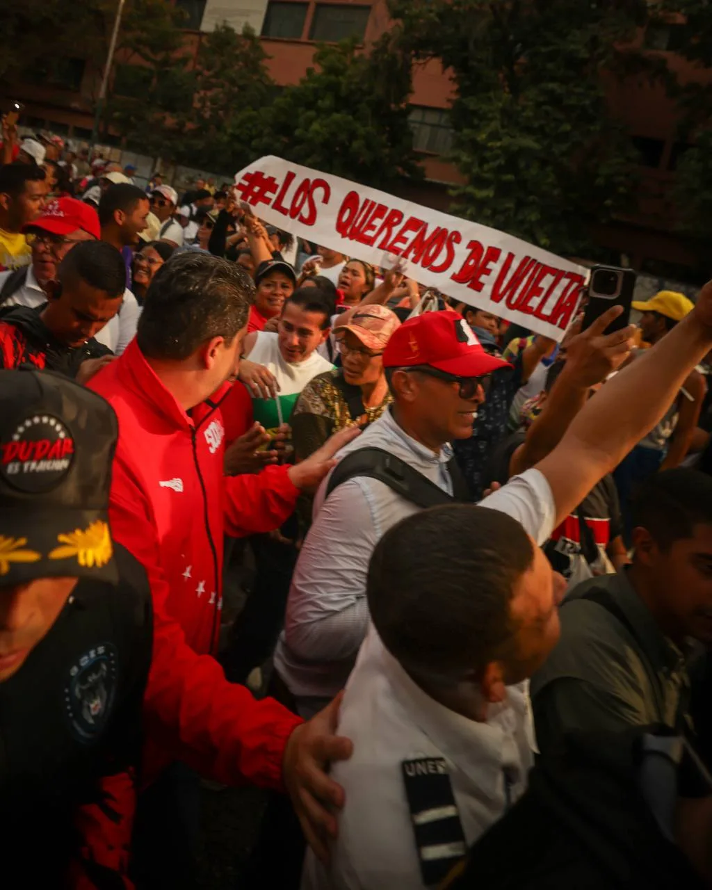 - El regreso de la pareja presidencial: La multitud aprovechó la jornada para elevar consignas en respaldo al regreso seguro del presidente Nicolás Maduro y la primera combatiente Cilia Flores.