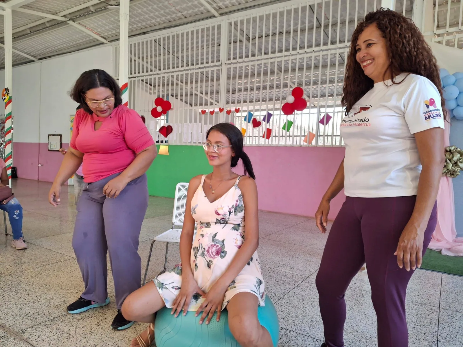 La jornada no solo se limitó a la entrega de insumos, sino que priorizó la salud física y técnica de las madres. Bajo la dirección de la Dra. Samari Peralta, las asistentes participaron en una sesión de ejercicios prenatales diseñados para mejorar el bienestar físico y preparar el cuerpo para el momento del parto.